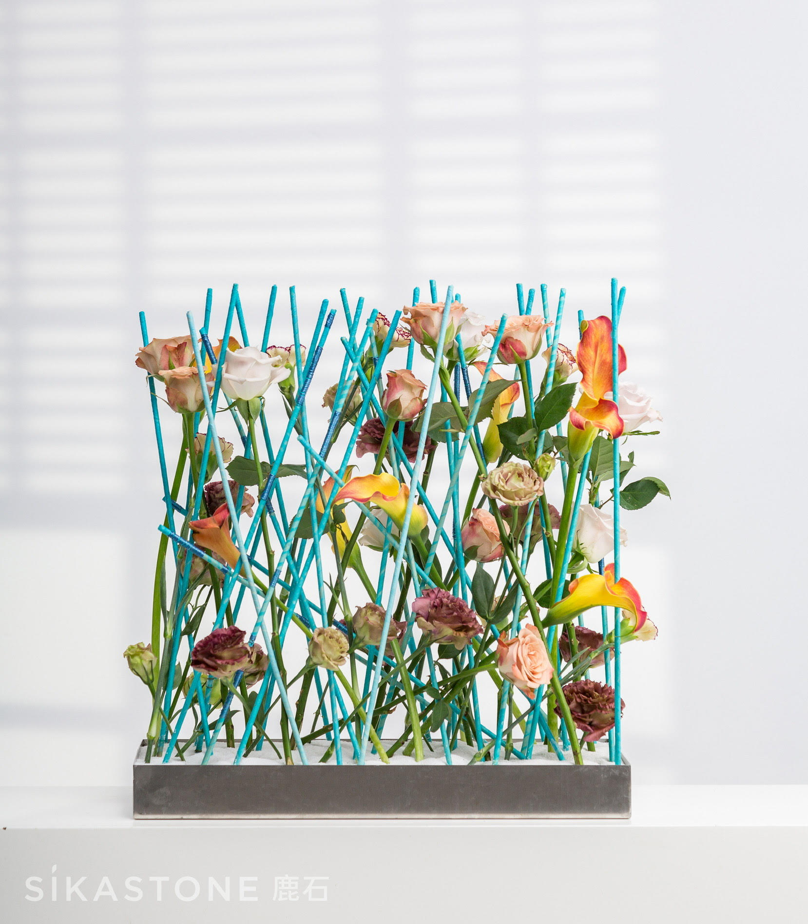 少ない花材で、インパクトと緊張感を感じさせる表現です